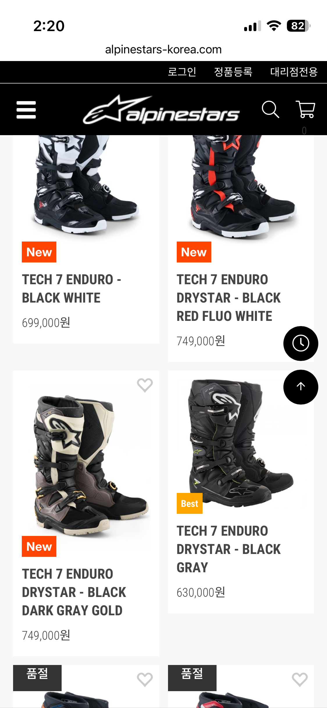TECH 7 ENDURO DRYSTAR - BLACK GRAY 제품은 구버전,
