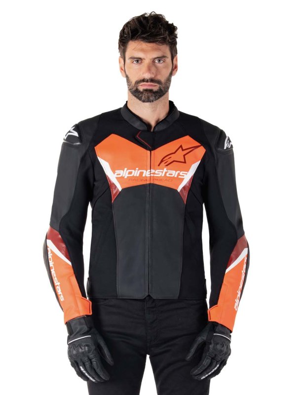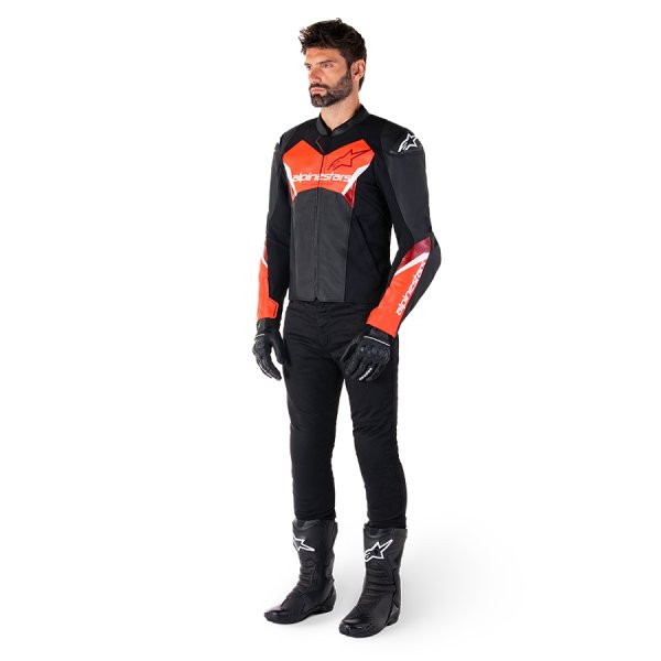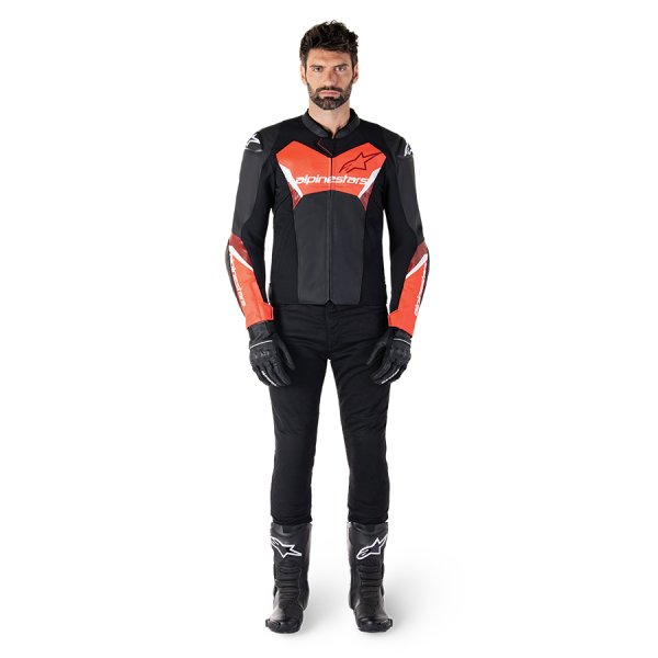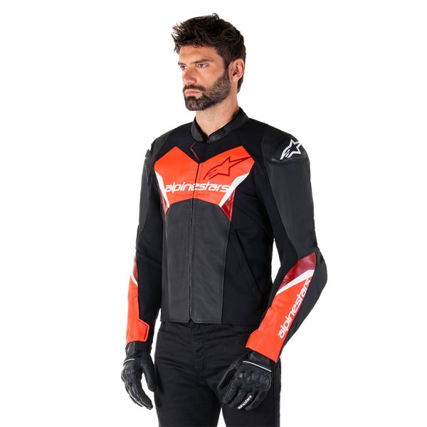 FASTER V3 LEATHER JACKET - BLACK RED FLUO