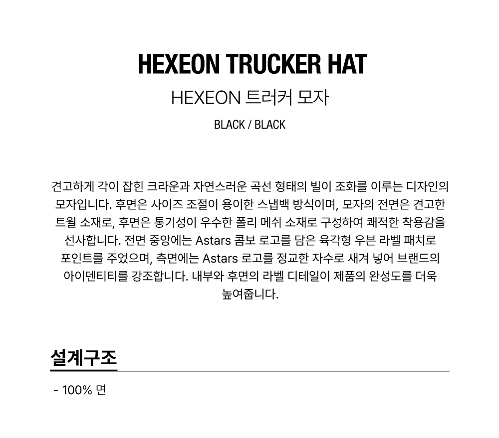 품명 : HEXEON TRUCKER HAT - BLACK BLACK