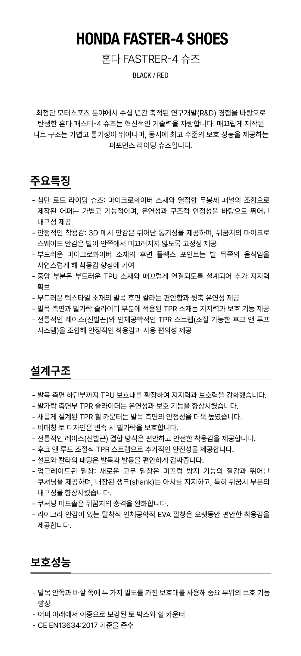 품명 : HONDA FASTER-4 SHOES - BLACK RED