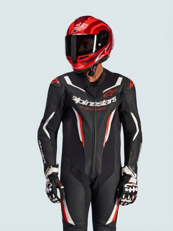 GP FORCE V2 LEATHER SUIT 1 PC - BLACK WHITE RED FLUO