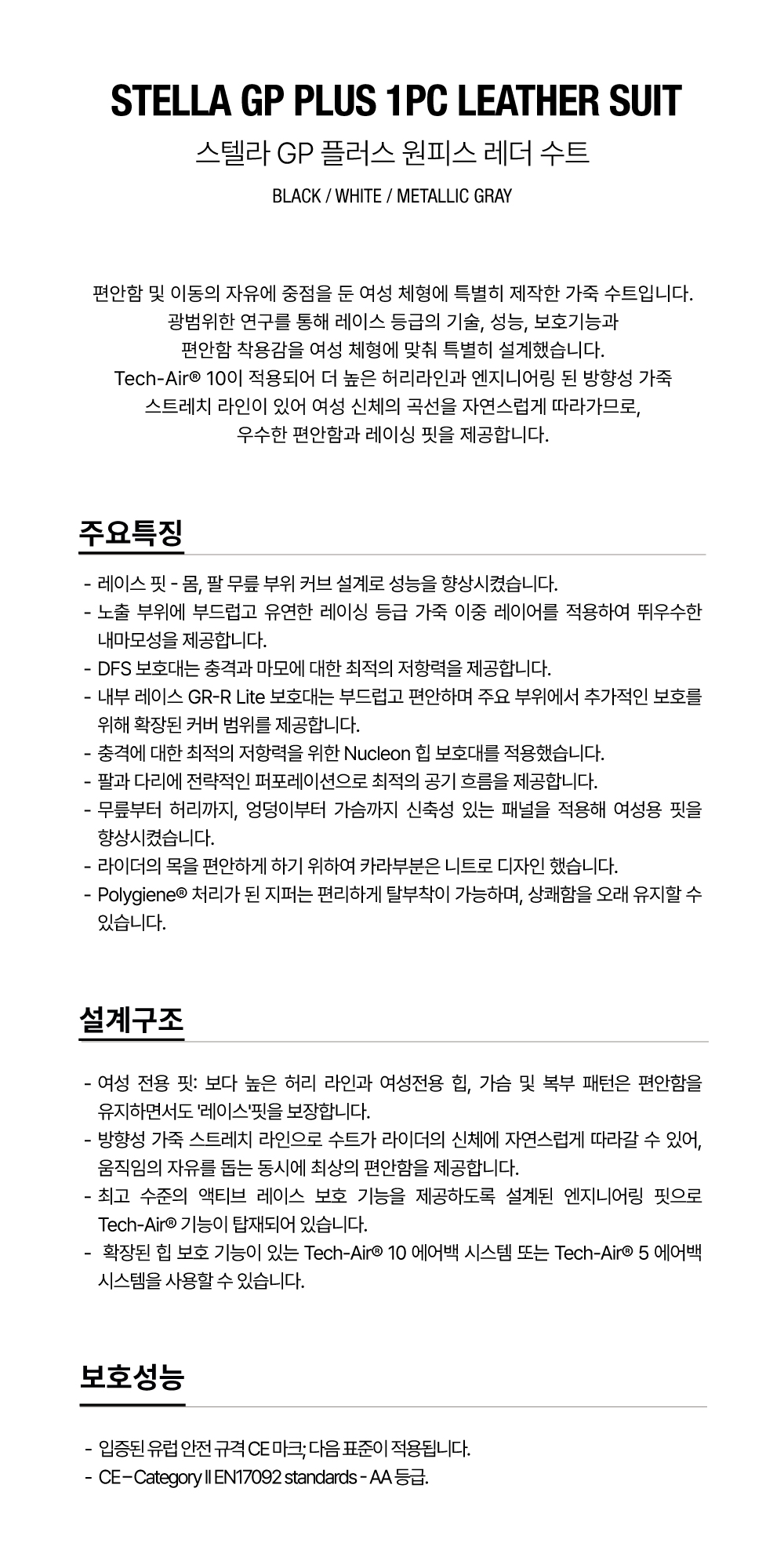 품명 : [여성] STELLA GP PLUS 1PC LEATHER SUIT - BLACK WHITE METALLIC GRAY