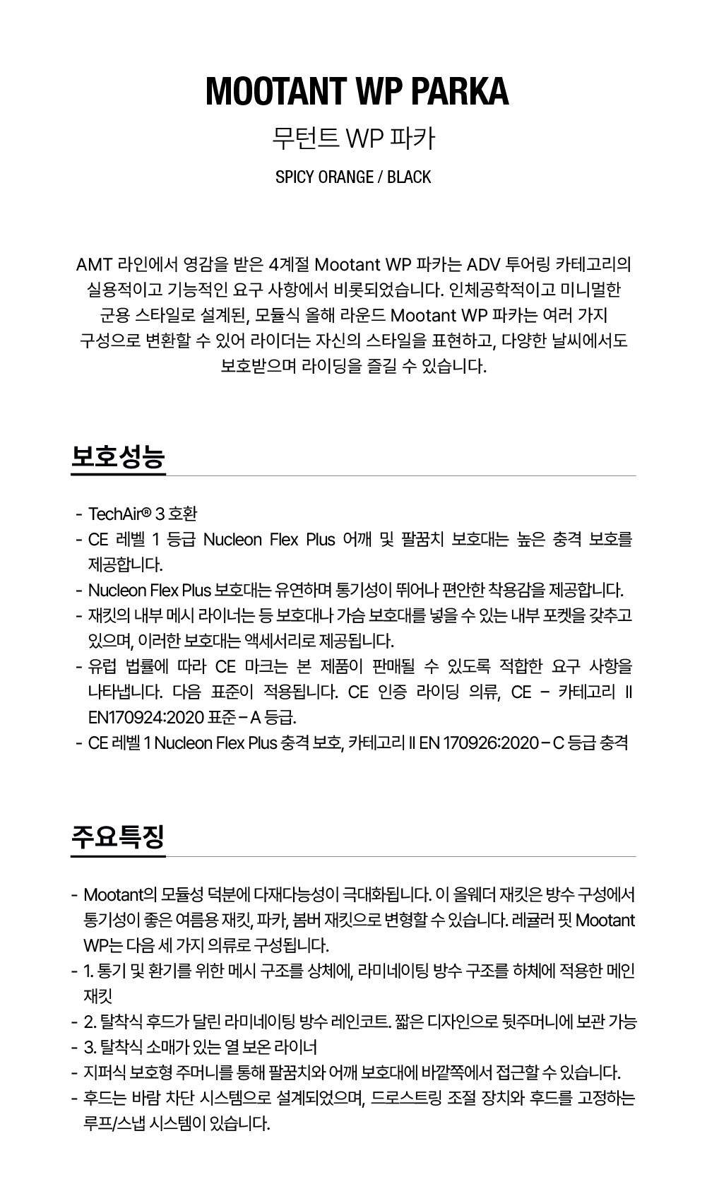 품명 : MOOTANT WP PARKA - SPICY ORANGE BLACK