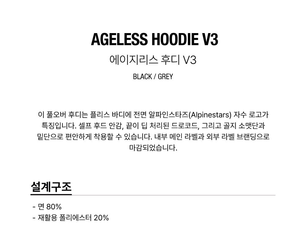 품명 : AGELESS HOODIE V3 - BLACK GREY
