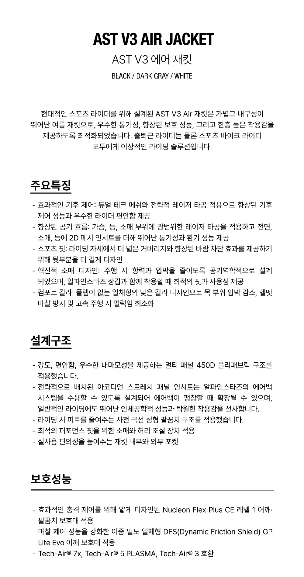 품명 : AST V3 AIR JACKET - BLACK DARK GRAY WHITE
