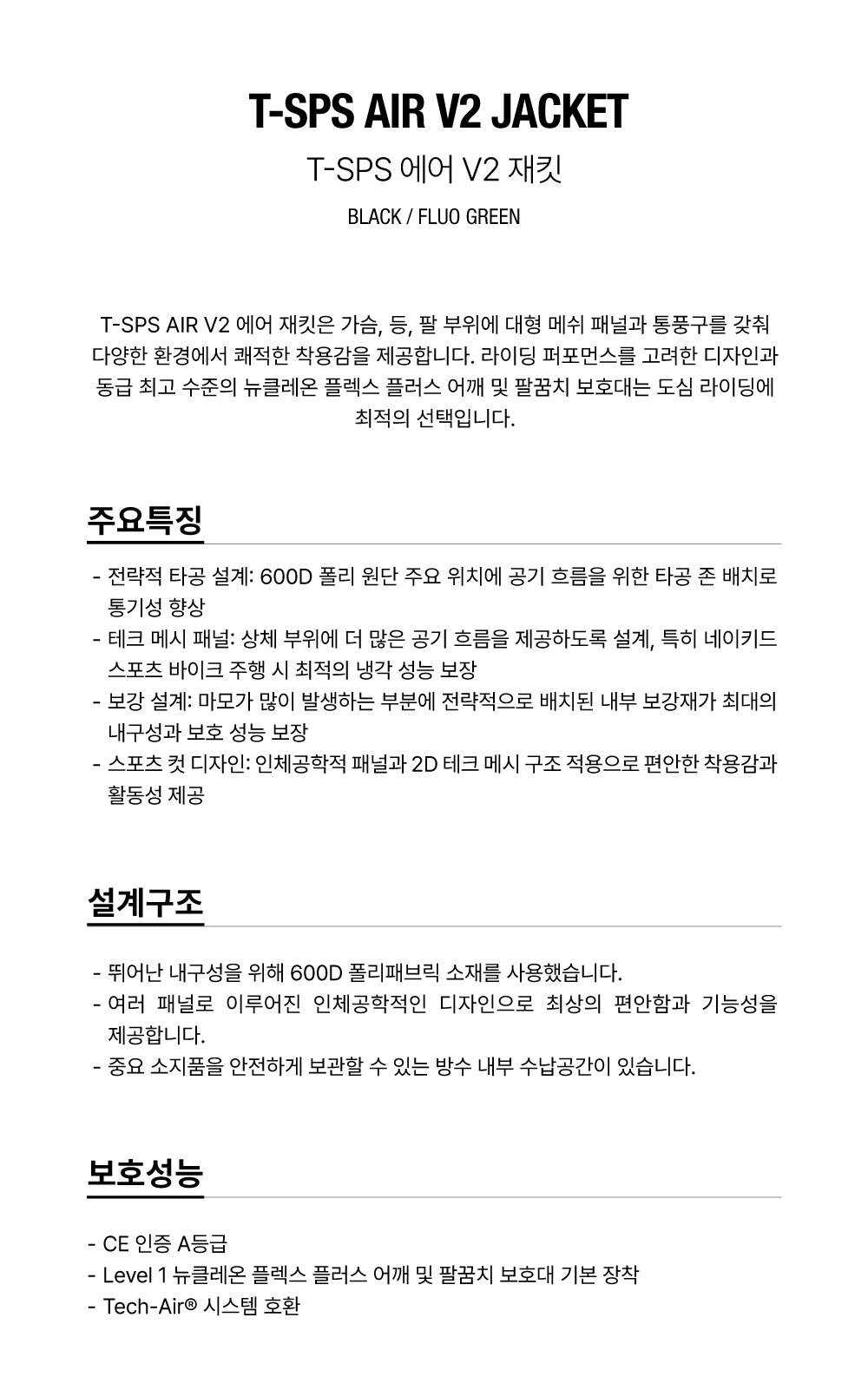품명 : T-SPS AIR V2 JACKET - BLACK FLUO GREEN