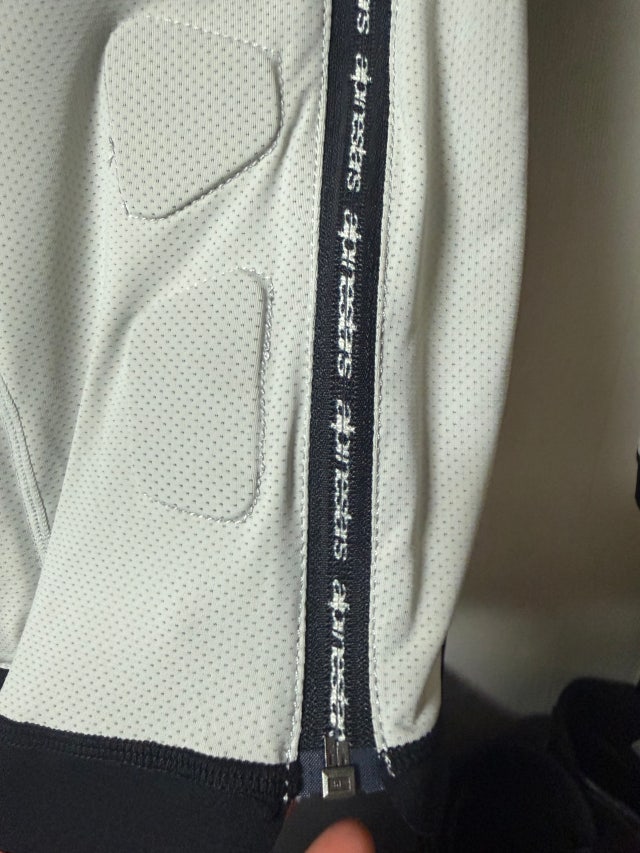 마감 퀄리티가 어디 무료봉사단체에서 봉사해줫습니까? 차라리 제대로 만들고 80만원에 파시던지 이게 뭔에요; 실밥은 겨드랑이털마냥 여기저기 튀어나와있고 지퍼 부분 프린팅은 들쭉날쭉하고 어깨부분은 봉재가 튿어진건지 누가 잡고 늘린것마냥 터질랑 말랑하고;;;